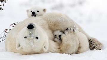 Isbjörnar trivs bäst ensamma, men när honan fått ungar stannar hon med dem i två år.